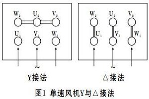 1.單速風機接線方法:一般情況下,所配電機功率在4KW以下為Y接法;4KW以上(包括4KW)為△接 法。接線圖如圖1所示: