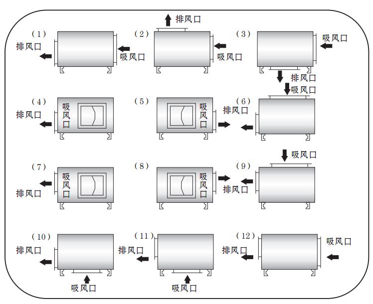 注:訂貨時還應(yīng)注明風(fēng)機的進出風(fēng)口位置編號,出風(fēng)口位置編號,詳見風(fēng)柜進、出風(fēng)口對照表。