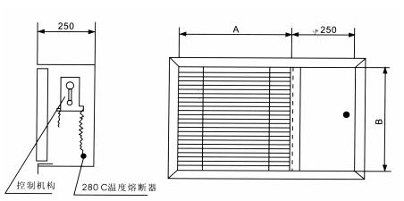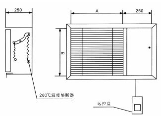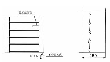 280℃溫度熔斷器自動關閉閥(防火),也可手動關閉,手動復位,可輸出聯動訊號,用排煙管道兼作通風管系統風機入口處。 |