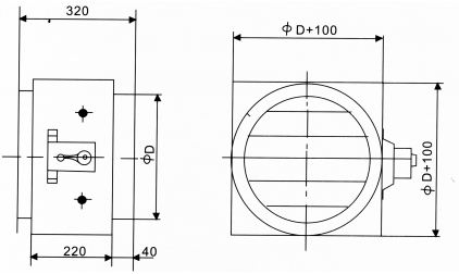 防火調節閥 | 70℃溫度熔斷器自動關閉(防火),也可手動關閉,手動復位,閥門葉片能在0-90℃范圍五檔調節風量,可輸出關閉訊號。 | |