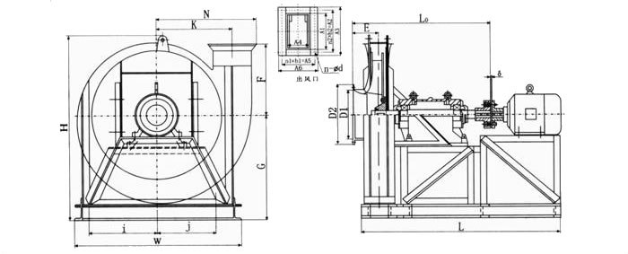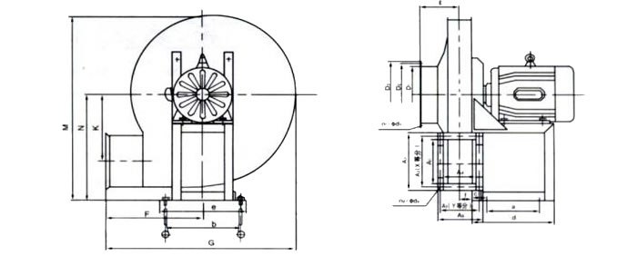 形式: 本通風(fēng)機(jī)為單吸入,有№.4、4.5、5、5.6、6.3、7.1、8.9、10、11.2、12.5、14、16共13號型號。